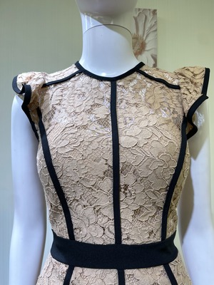 胸パット、背中ファスナー、ウエストリボン取り外し不可、使用感・毛玉あり