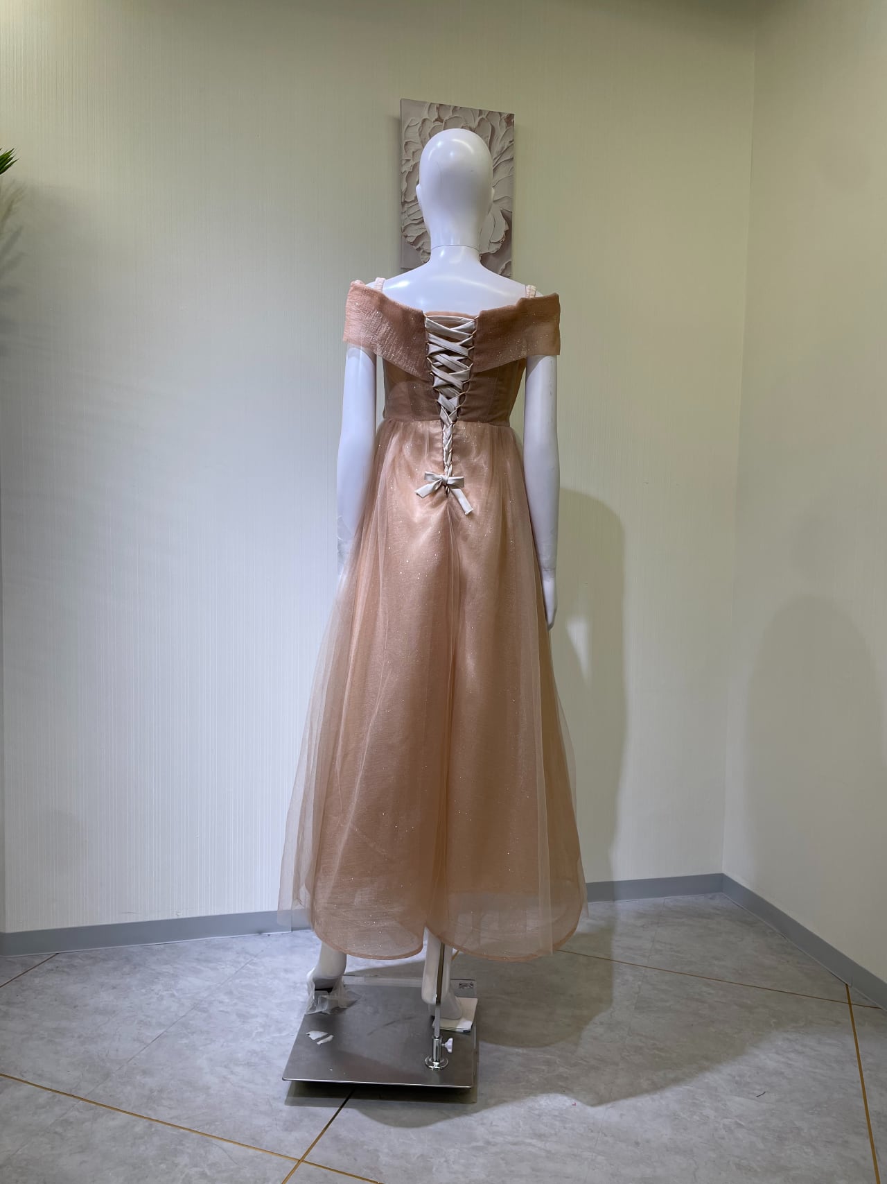 着丈前中心リボン上から122cm、背中編み上げ