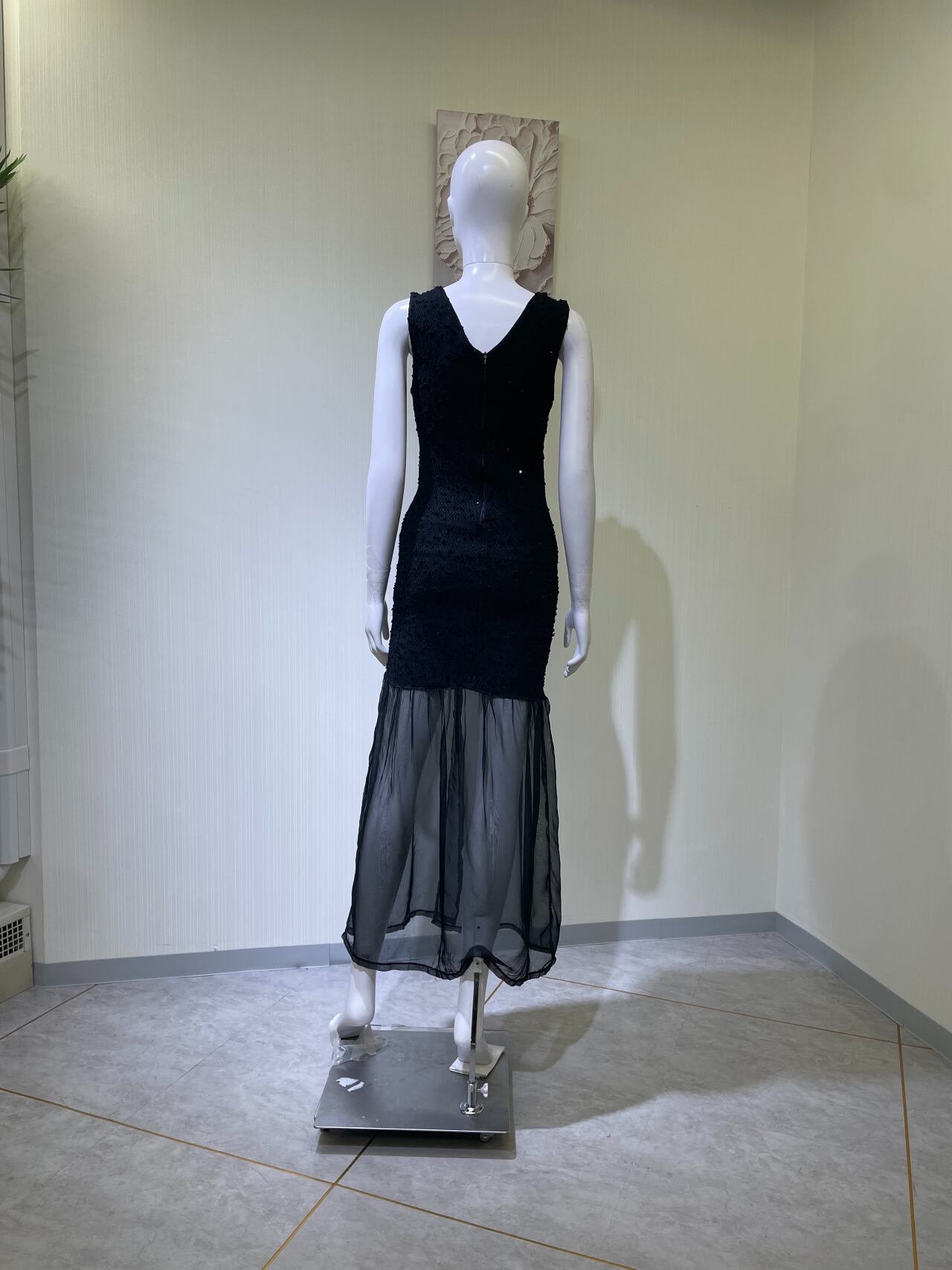 背中ファスナー、上生地伸びる、ファスナー元破れ・前スリット破れあり
