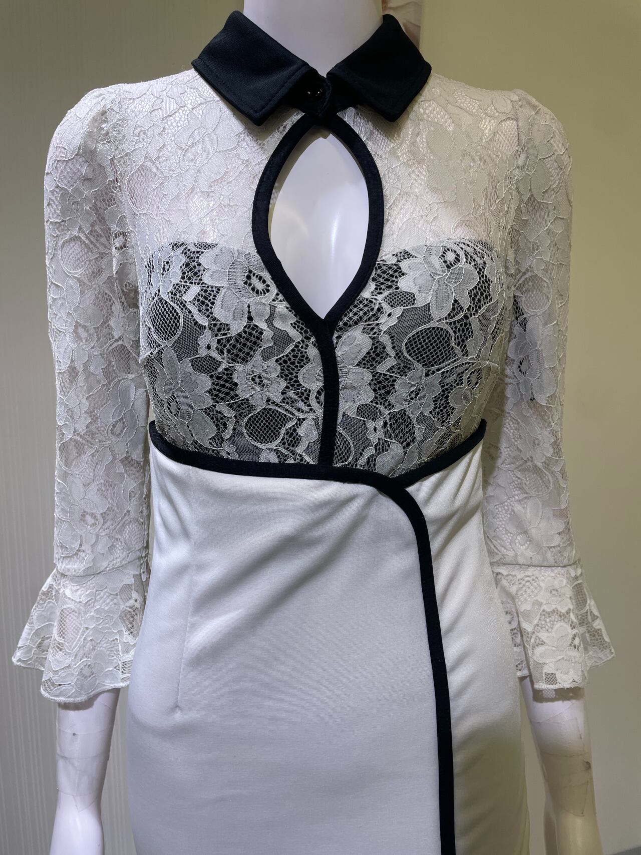 背中ファスナー、胸パット、首元金口あり、