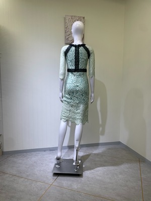 着丈レース下まで105cm、背中ファスナー、くすみ使用感あり