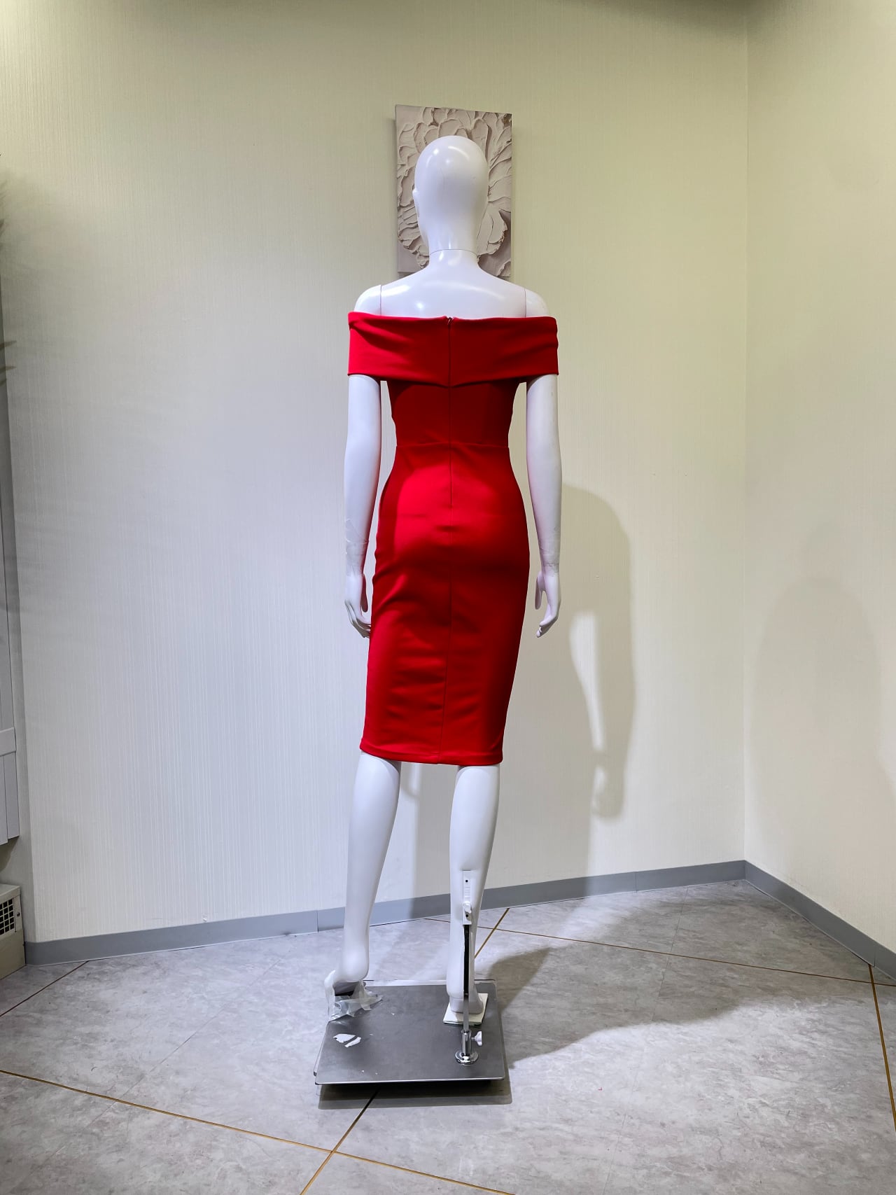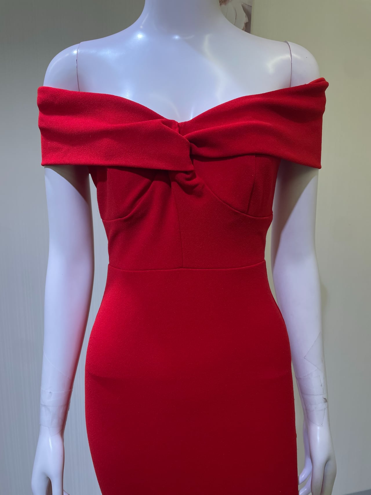 後ファスナーより着丈90cm、オフショル伸びている、鍵ホック取れてる