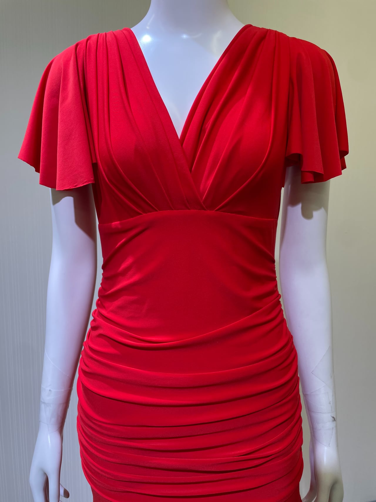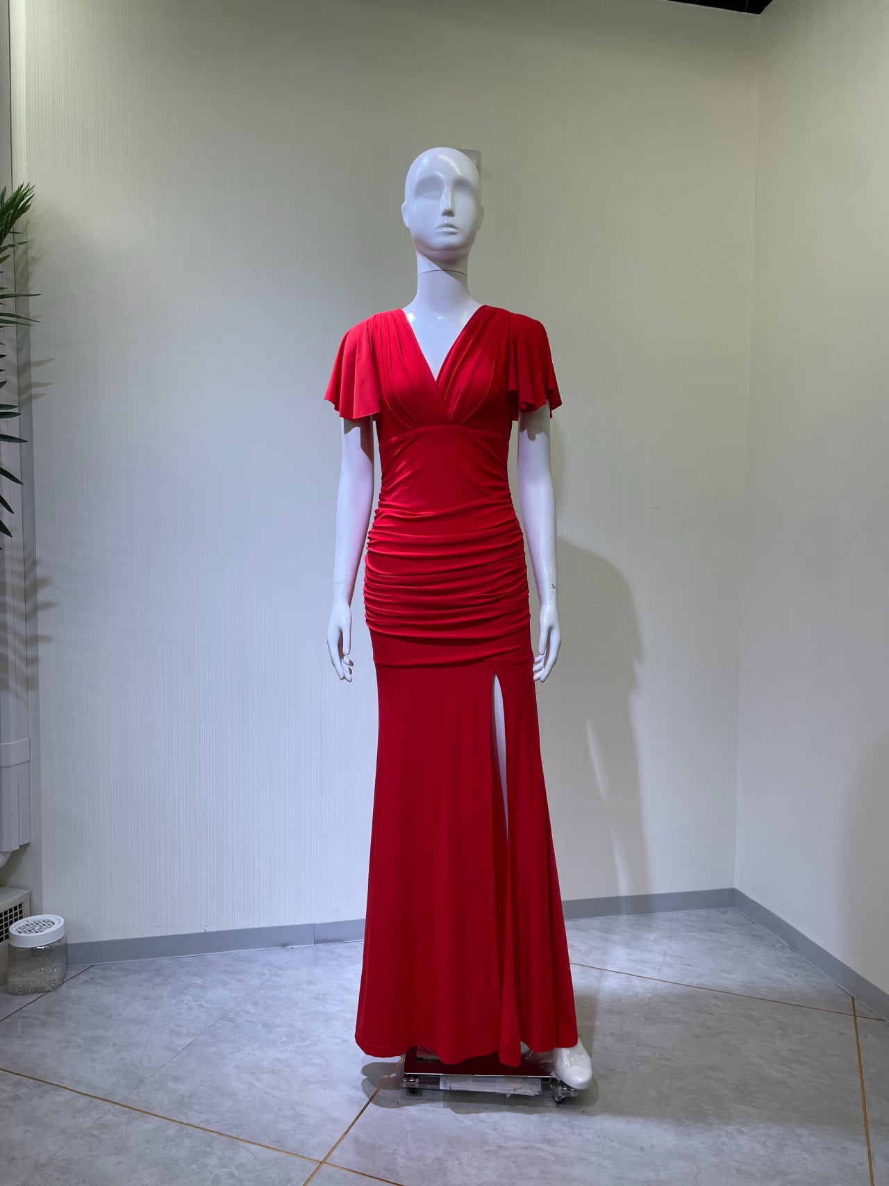 左前スリット右76cm左77.5cm、ファスナーなし、かぶりドレス、生地キズ・裾の縫い目