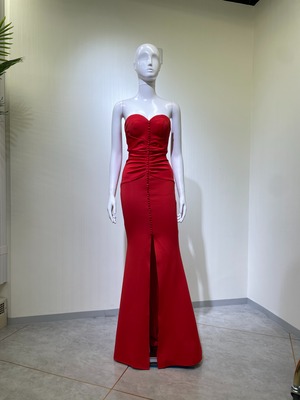 胸パット、前中心スリット75.5cm、背中ファスナー、前金口飾り