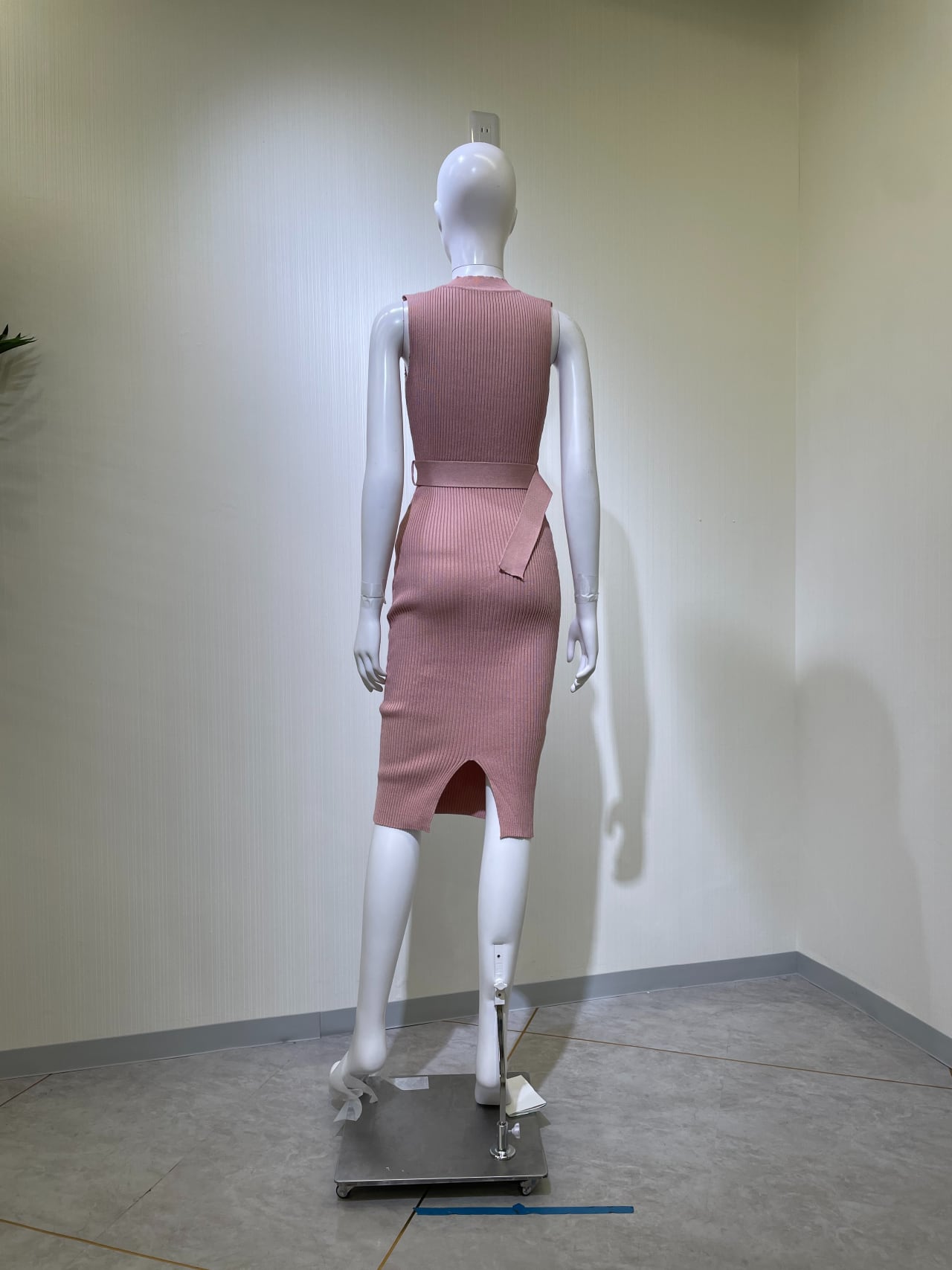 前立て(ウエストまで)、後中心スリット14cm、共生地ベルト5cm巾あり
