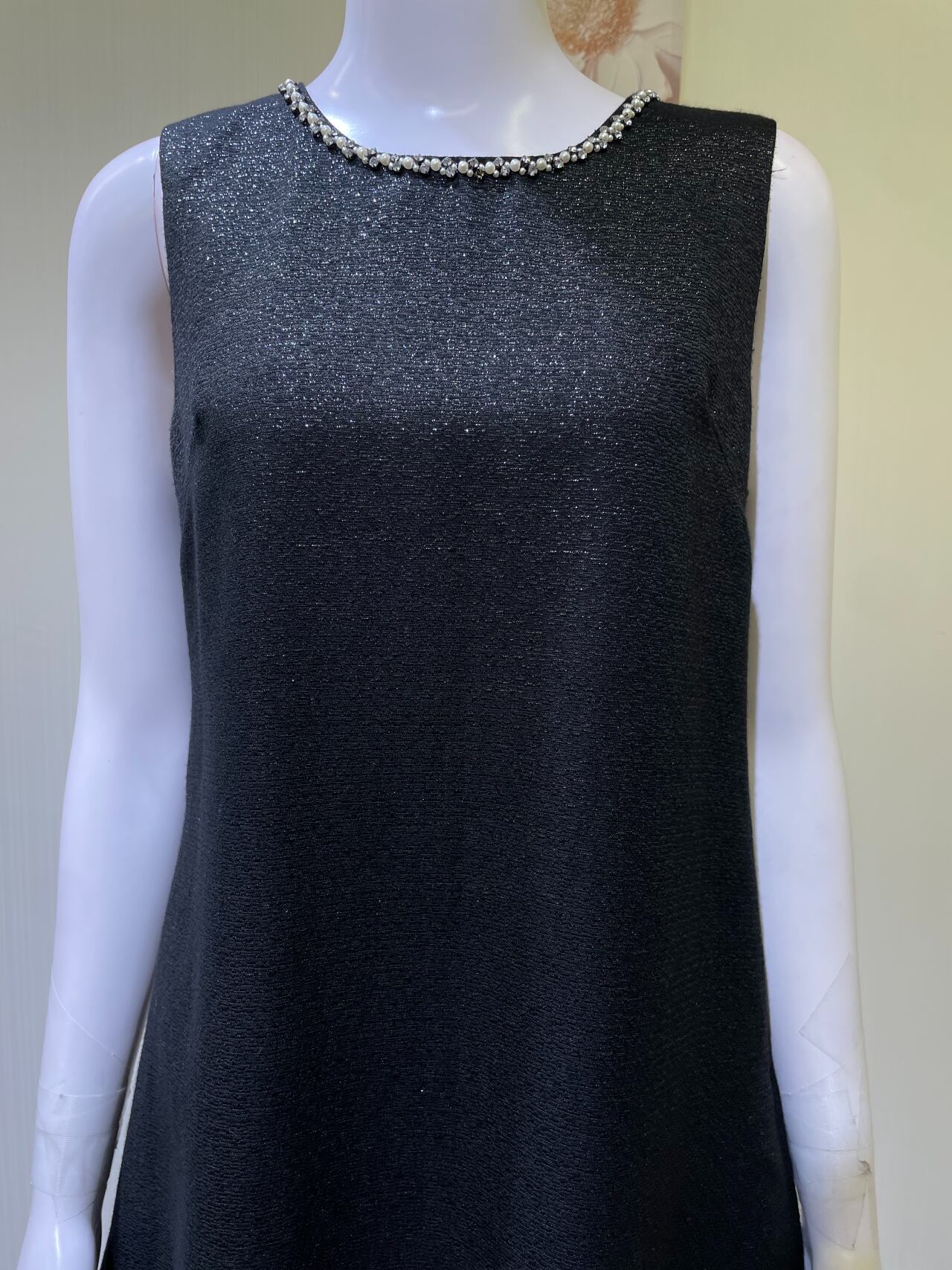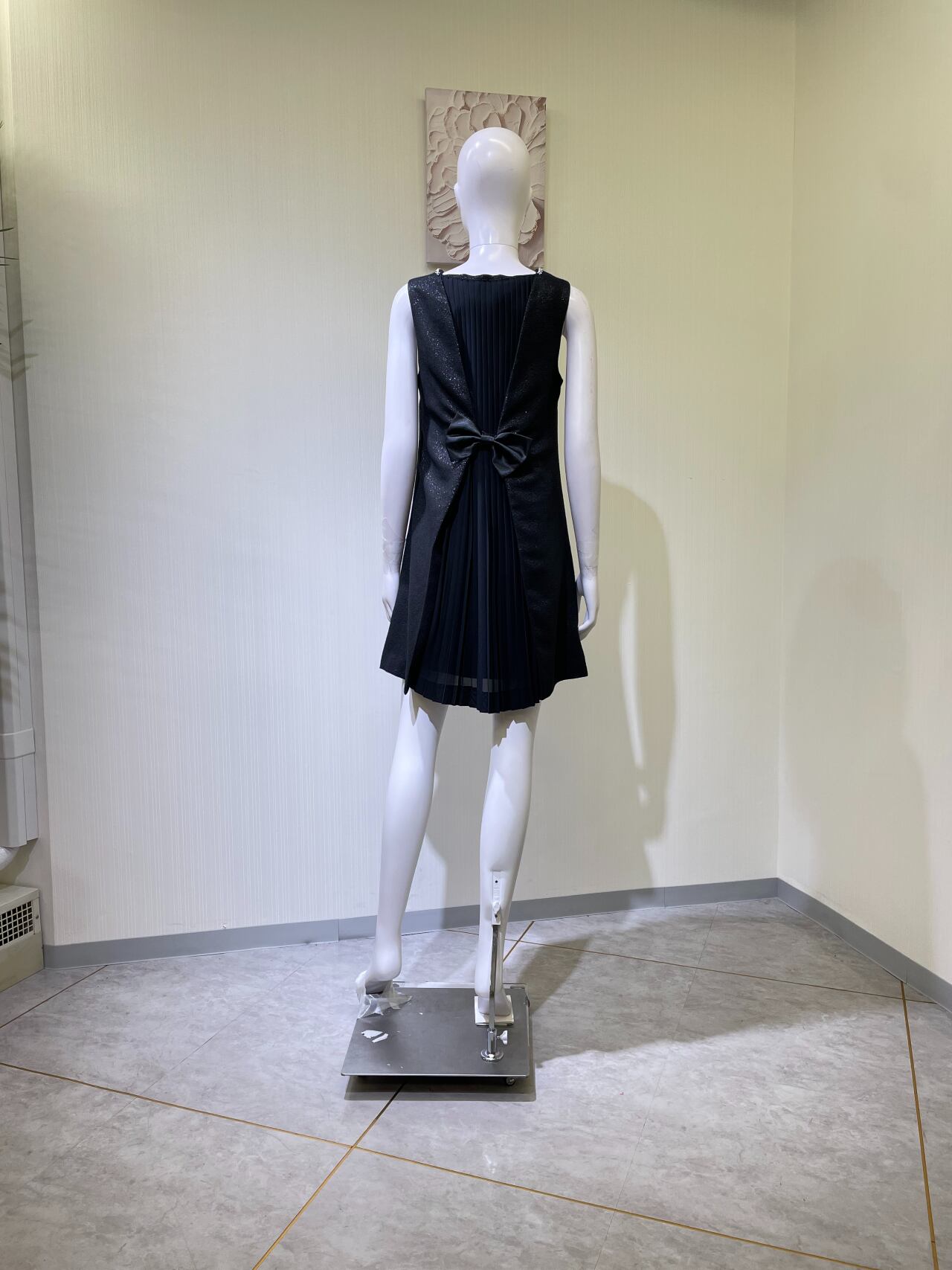 背中リボン取り外し不可、左脇ファスナー、前中心ビーズ取れてる
