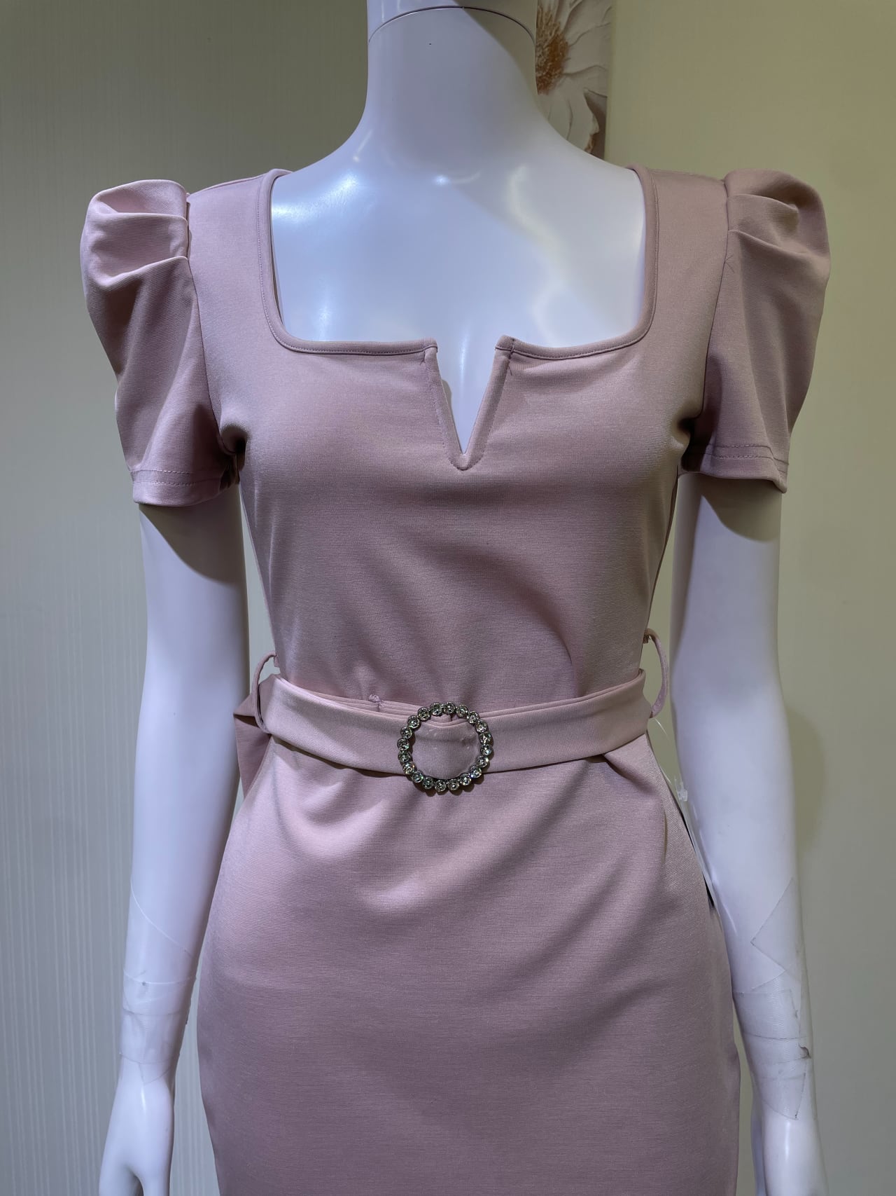 ファスナーなし、かぶりドレス、共生地3cm巾ベルトあり、ベルト通しあり、腰毛玉