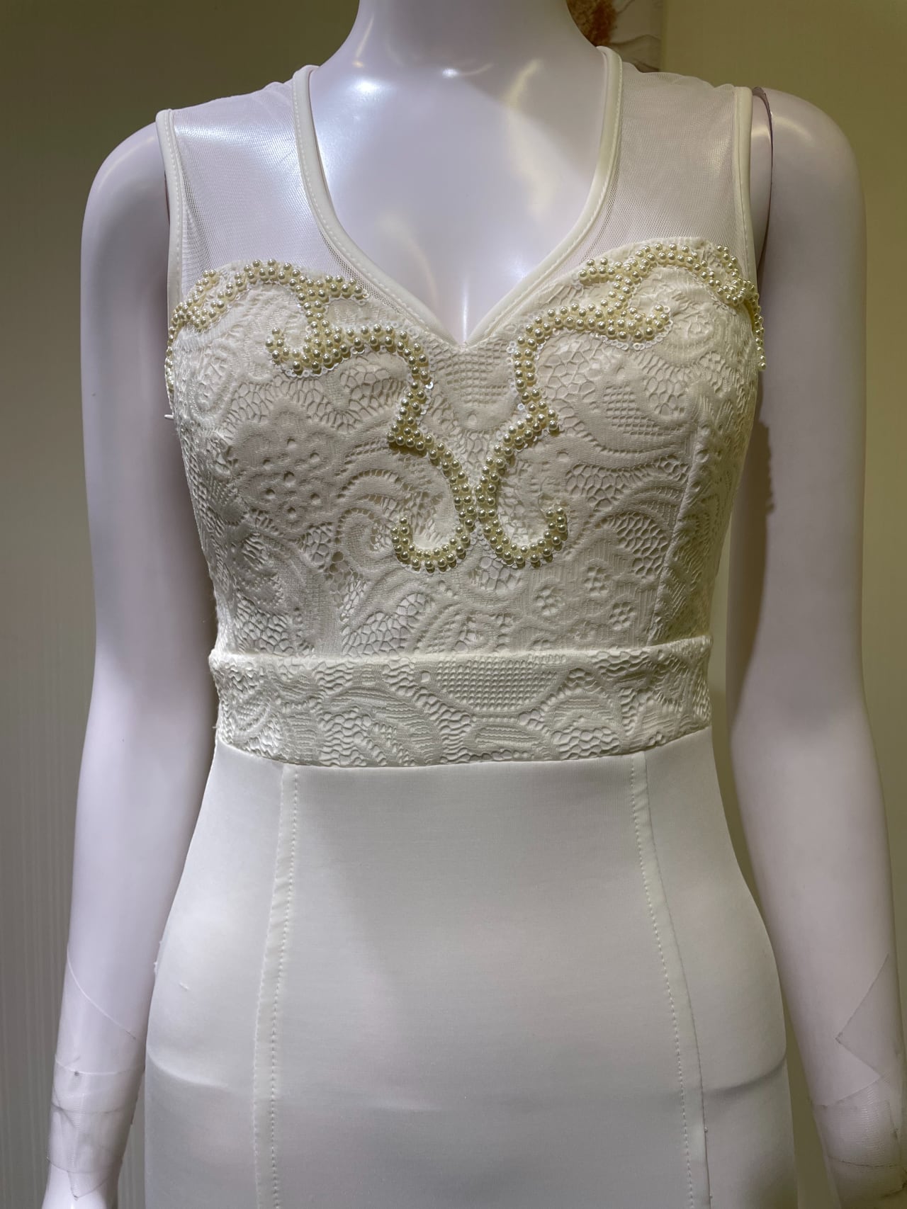 右脇ファスナー、胸パットあり、裾使用感